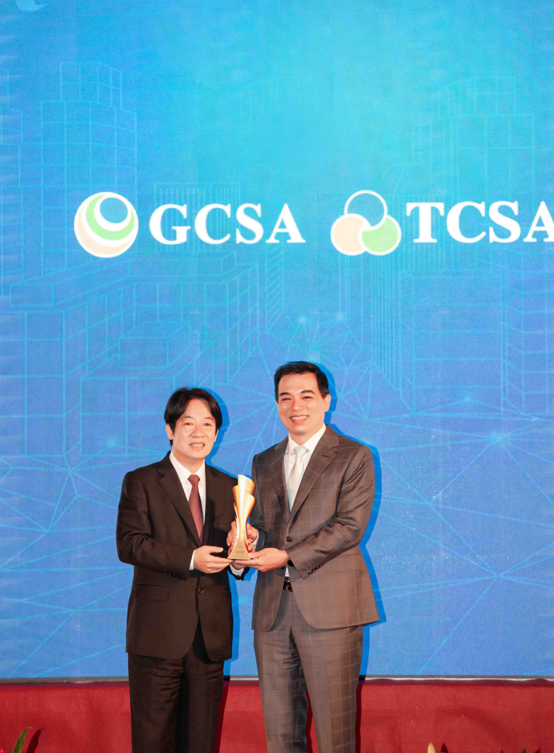 達(dá)全方位永續(xù)表現(xiàn)獲全球永續(xù)獎(jiǎng)及臺(tái)灣永續(xù)獎(jiǎng)肯定,由副總統(tǒng)賴清德頒獎(jiǎng) (左),LEYU官網(wǎng)總經(jīng)理柯富仁 (右) 代表領(lǐng)獎(jiǎng)