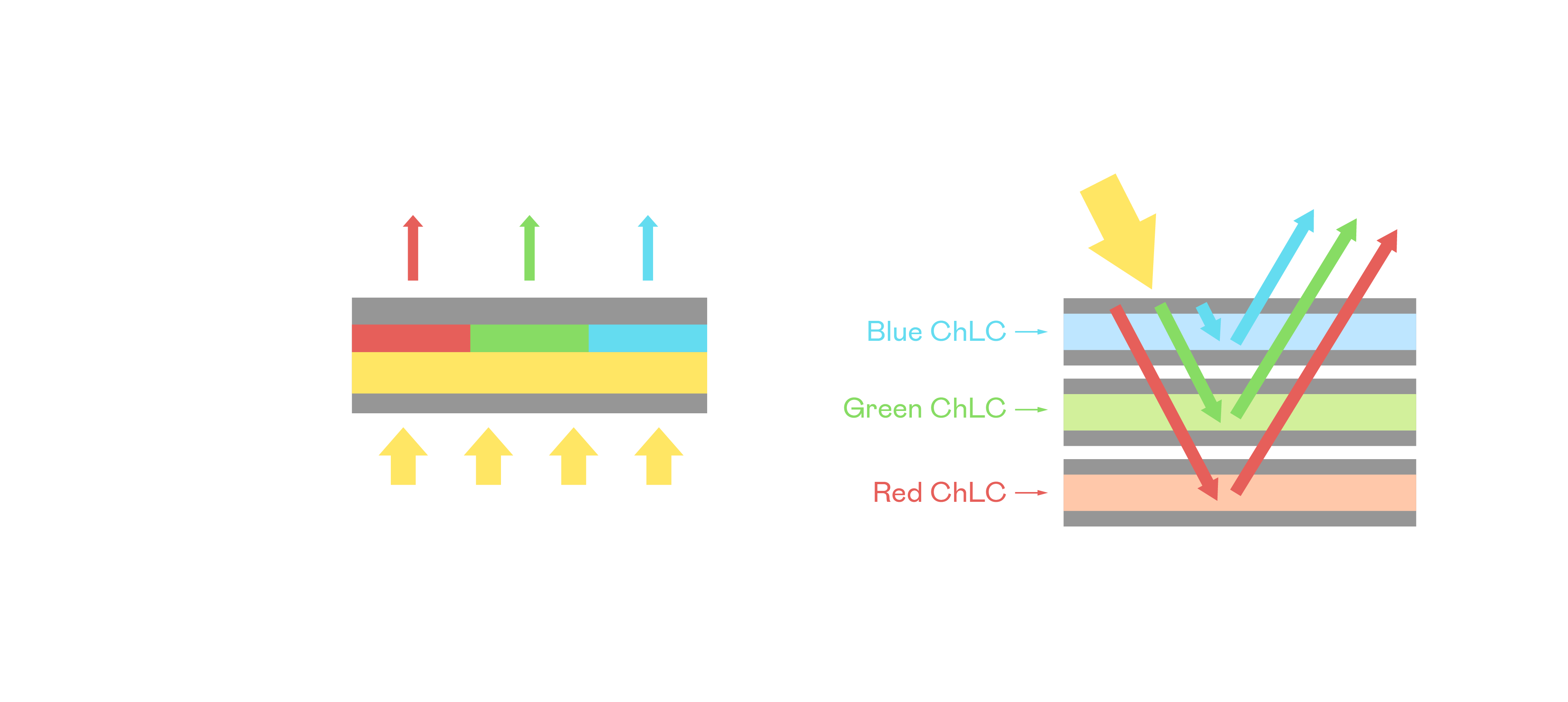 LEYU官網膽固醇液晶顯示器是由紅、綠、藍三層膽固醇液晶面板堆疊而成,并采用無彩色濾光片設計,減少環境光在反射過程中的損耗。