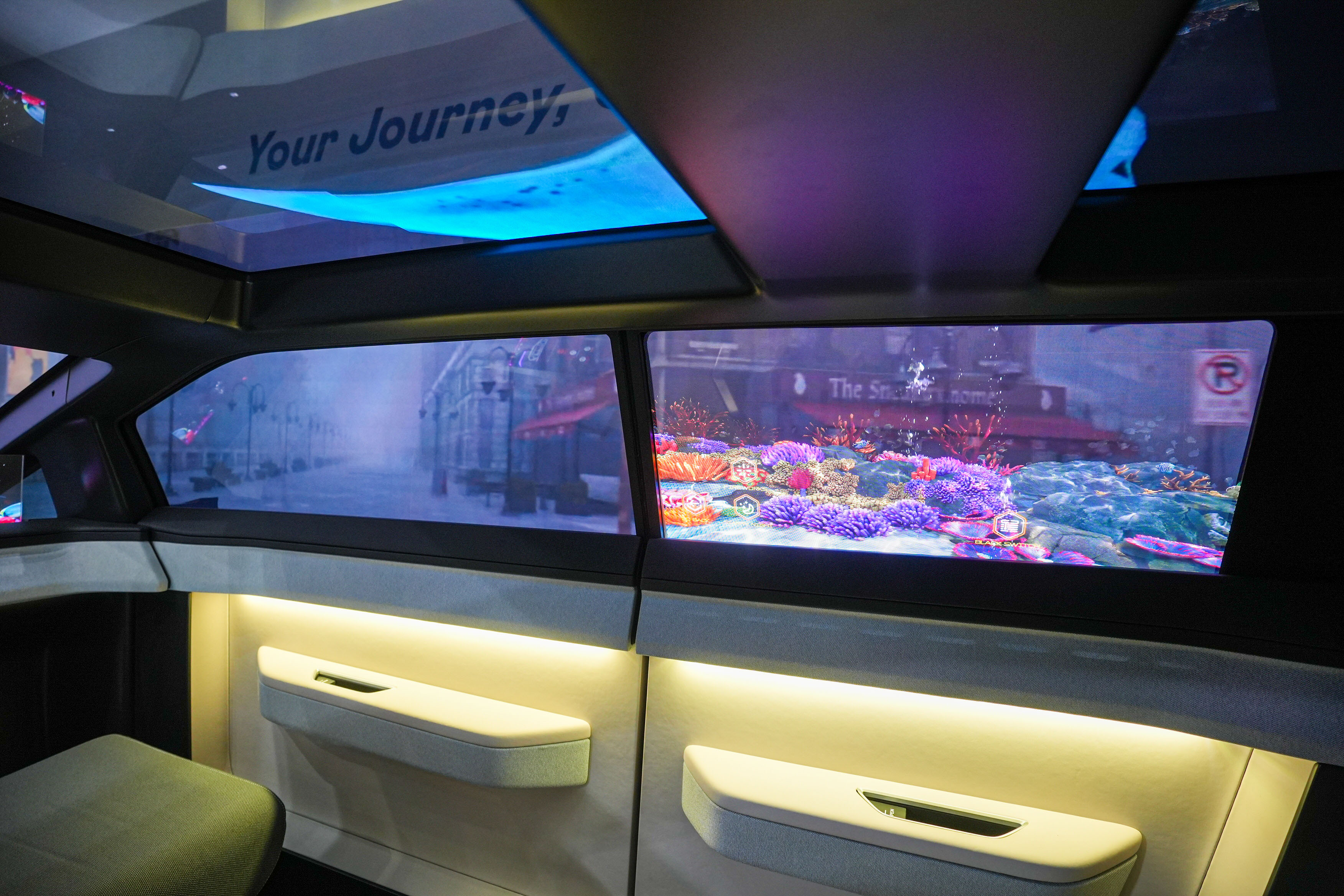 友達Smart Cockpit 2025集Micro LED透明、大型化、可撓優勢之大成,攜手BHTC打造未來視界的車用Display HMI解決方案,帶來「幻境全景天幕」、「XR 互動智慧窗」、「多變形態中控顯示」、「隱藏式智駕介面」、「無界透明顯示介面」等,貫穿車艙內涵蓋天窗、車側窗、中控臺和方向盤等處的精彩Micro LED應用,創造無所不在,以使用者體驗出發,具備AI功能與即時性的顯示互動介面,提供駕乘者直覺式的操控體驗與智慧化的座艙體驗。